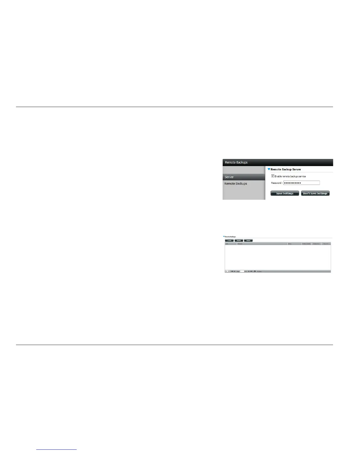 The Remote Backups section allows you to back up your ShareCenter to another ShareCenter, Linux Server, or vice versa from