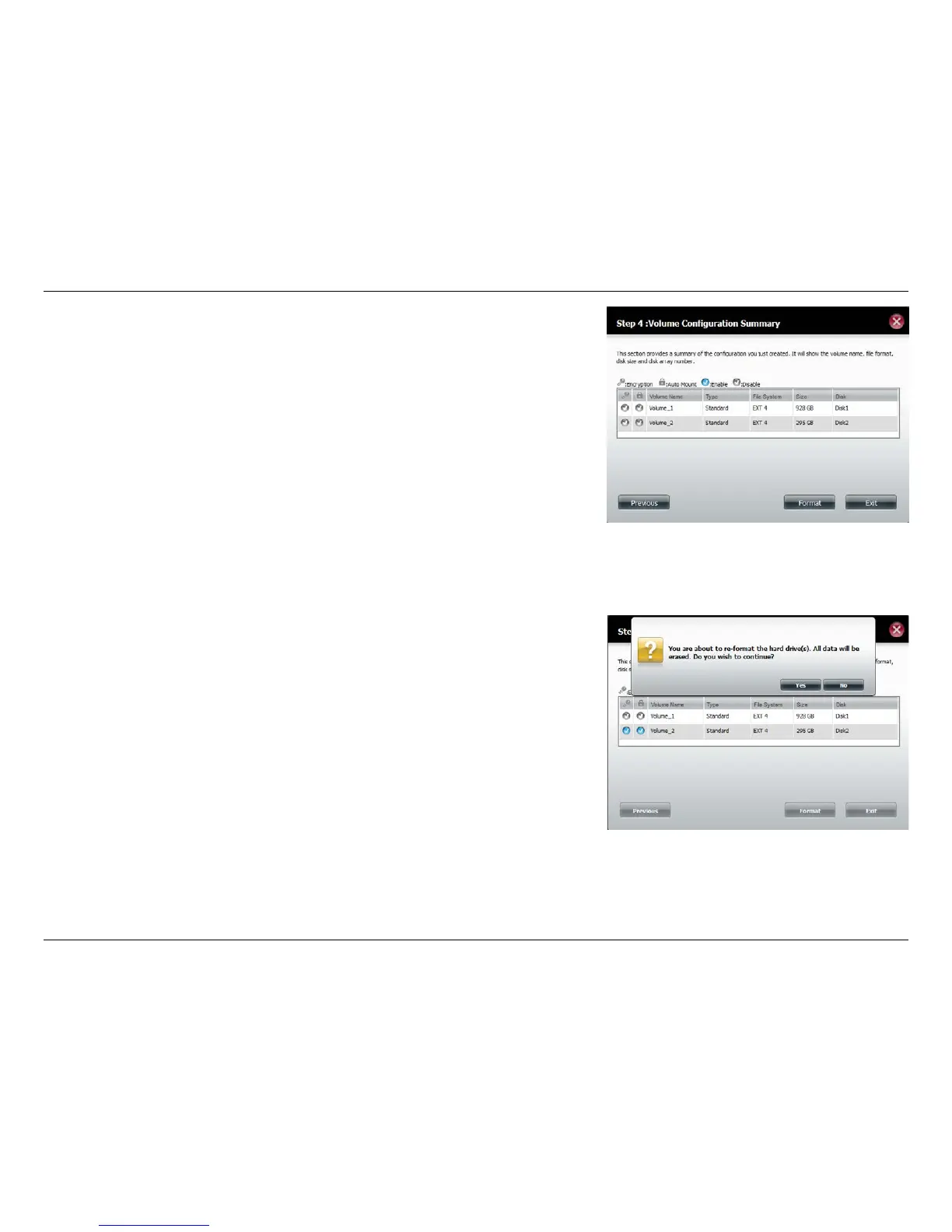 Volume Name, the RAID type, the File System used, and Size for each Disk.