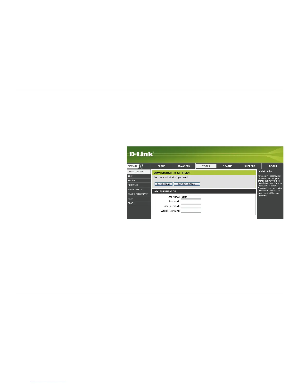 The Admin menu allows you to set a password for the admin account. It is recommended to set an admin account