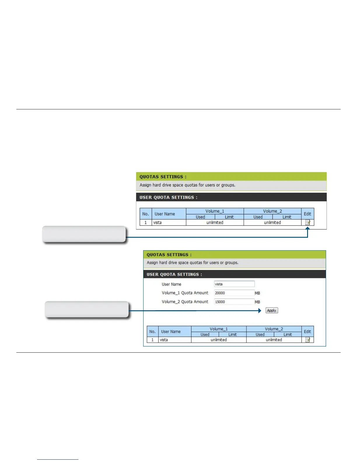 on this page, and cannot be deleted. The default quota setting is “Unlimited”.