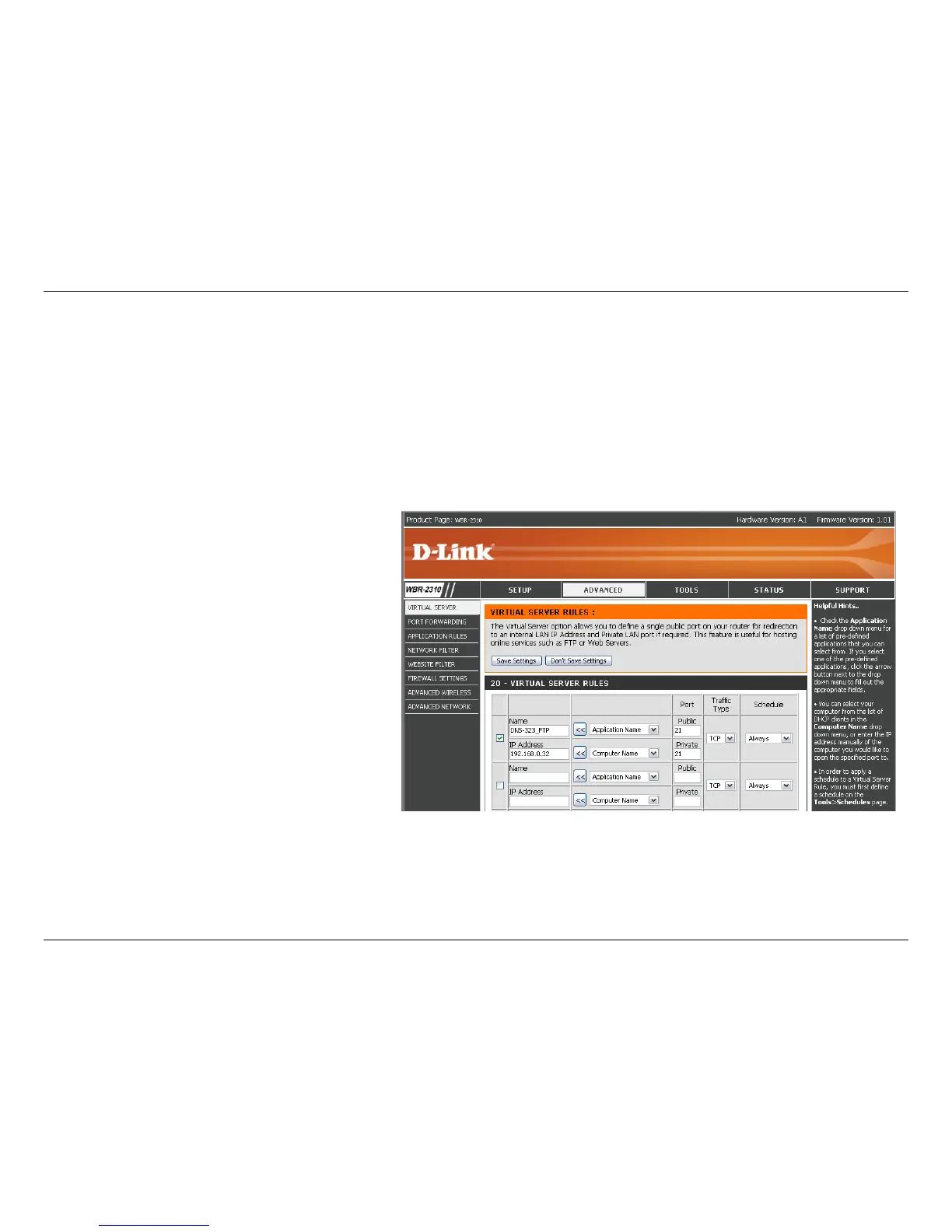 If you are using a D-Link router, such as the WBR-2310 used in the example below, your port forwarding rule should