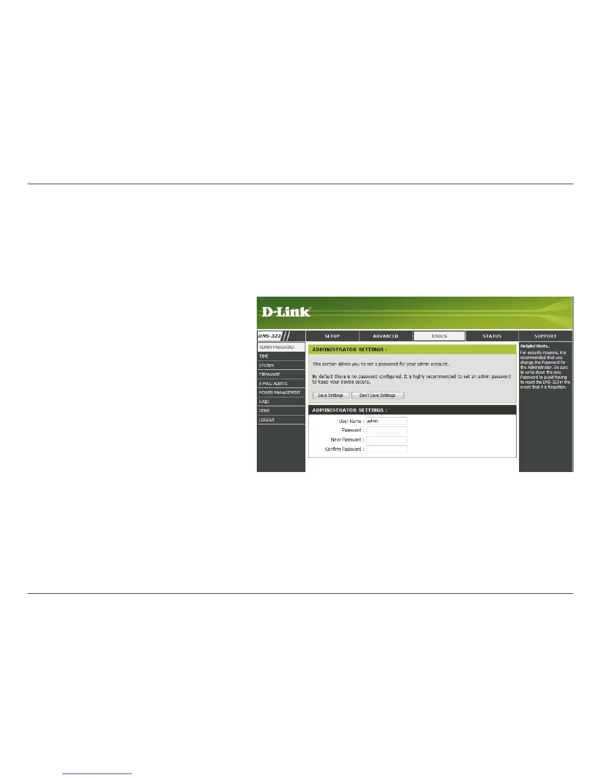 The Admin menu allows you to set a password for your admin account. It is recommended to set a password when