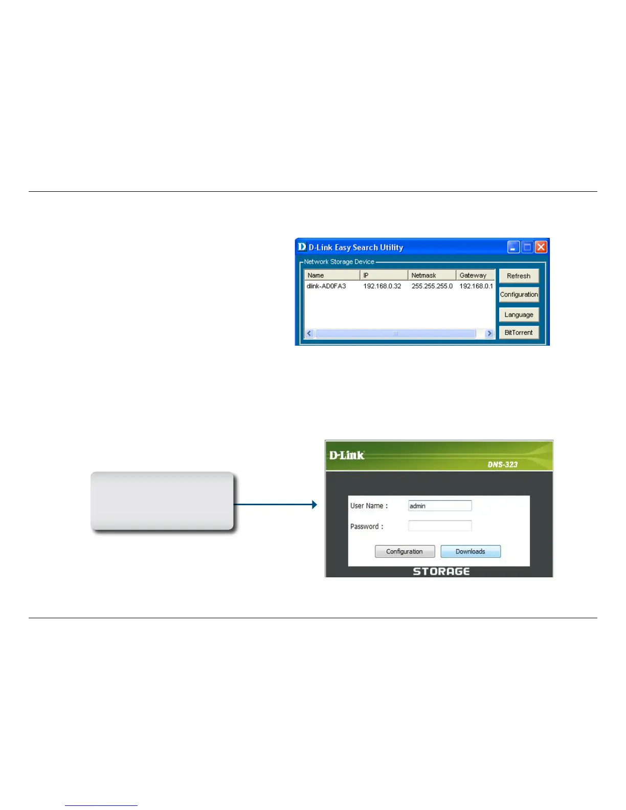 The DNS-323 login screen will appear.