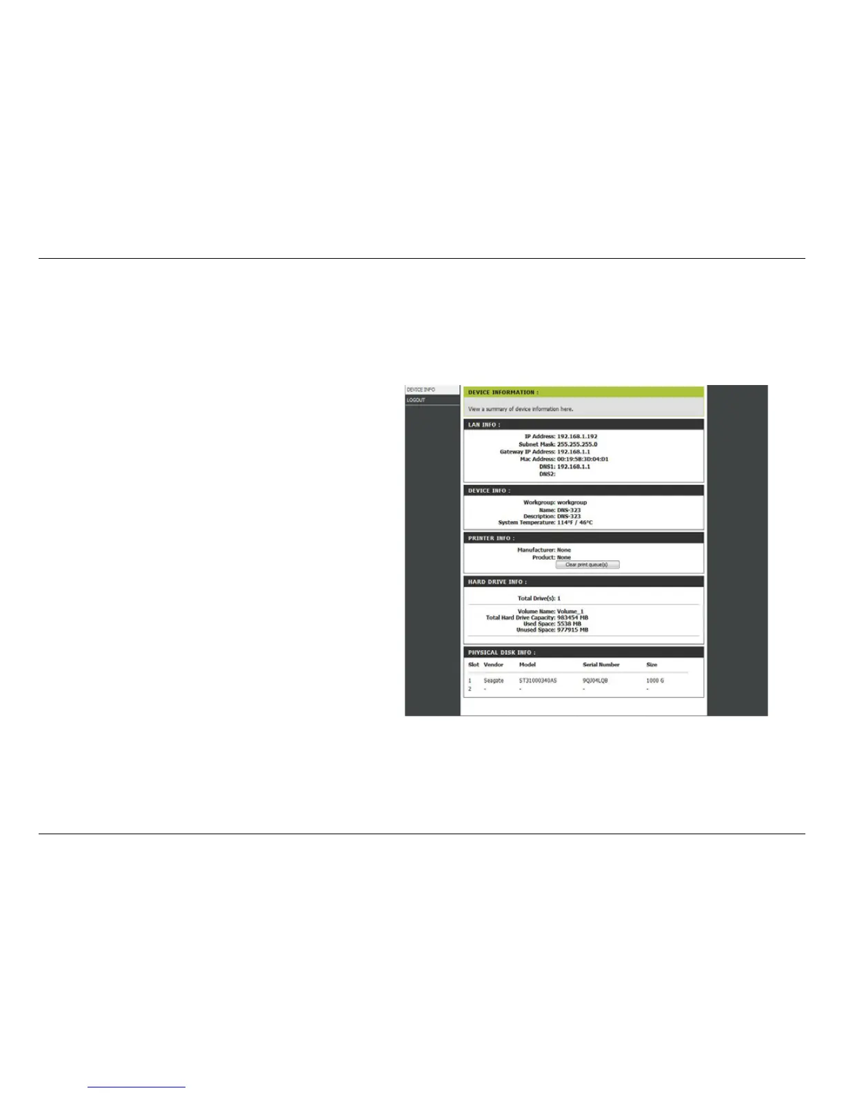 the back of the DNS-323. You will see the UPS listed on the Device Information window (Status > Device Info) under