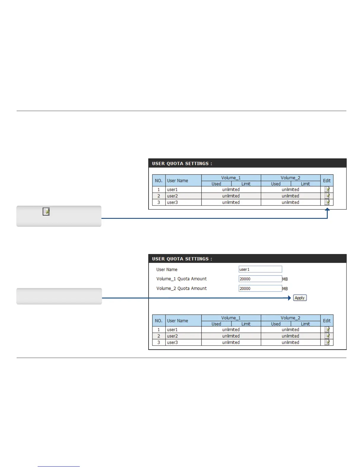 on this page, and cannot be deleted. The default quota setting is “Unlimited”.