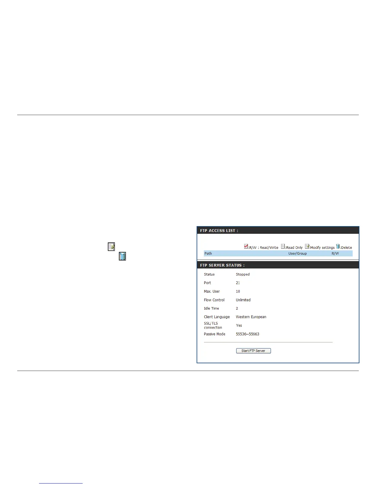 Displays the current status of the FTP Server. Click