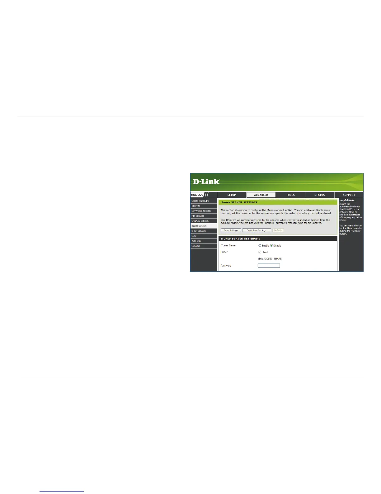 local network running iTunes. If the server is enabled, the DNS-323 will be automatically detected by the iTunes program