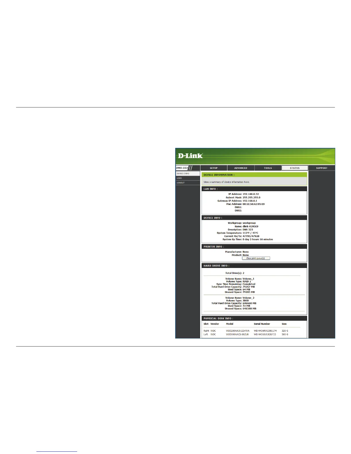 DNS-323, you can click the Clear Print Queue(s)