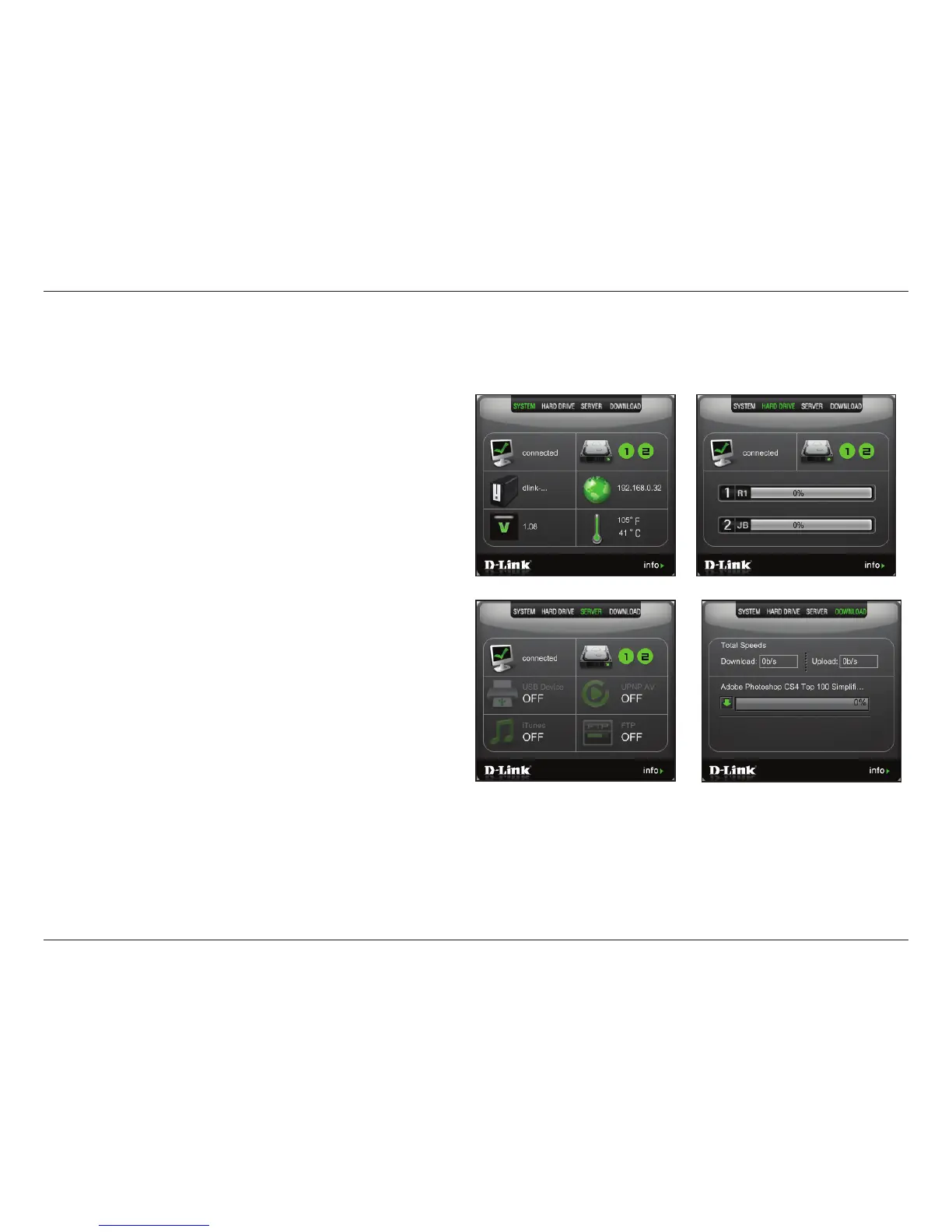The D-Link Widget is mainly used for monitoring the activities taking place on your ShareCenter™.