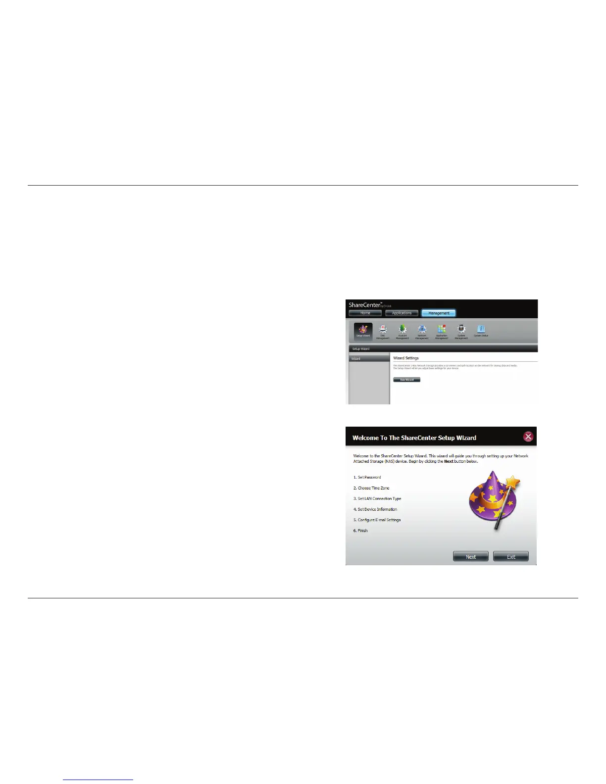 The ShareCenter has a Setup Wizard that allows you to quickly congure some of the basic device settings. Click the Setup Wizard icon to start