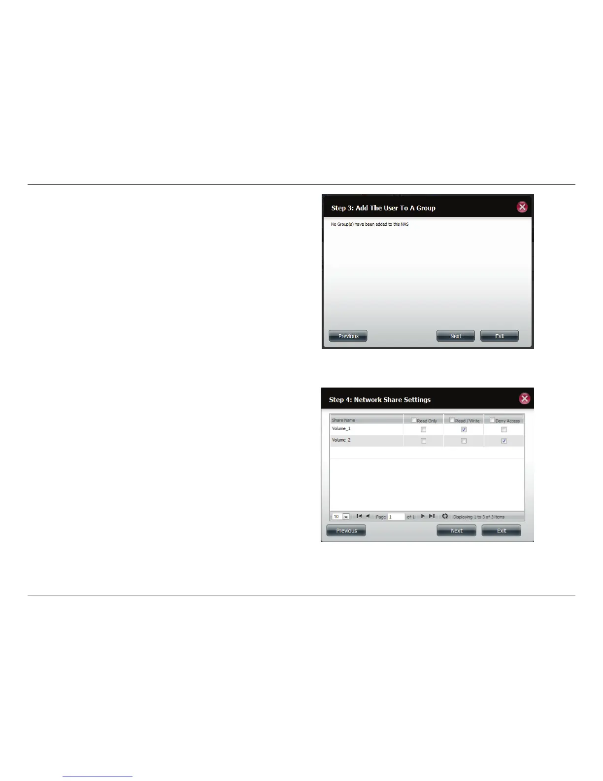 Read/Write, or Deny Access. Click Next to continue.