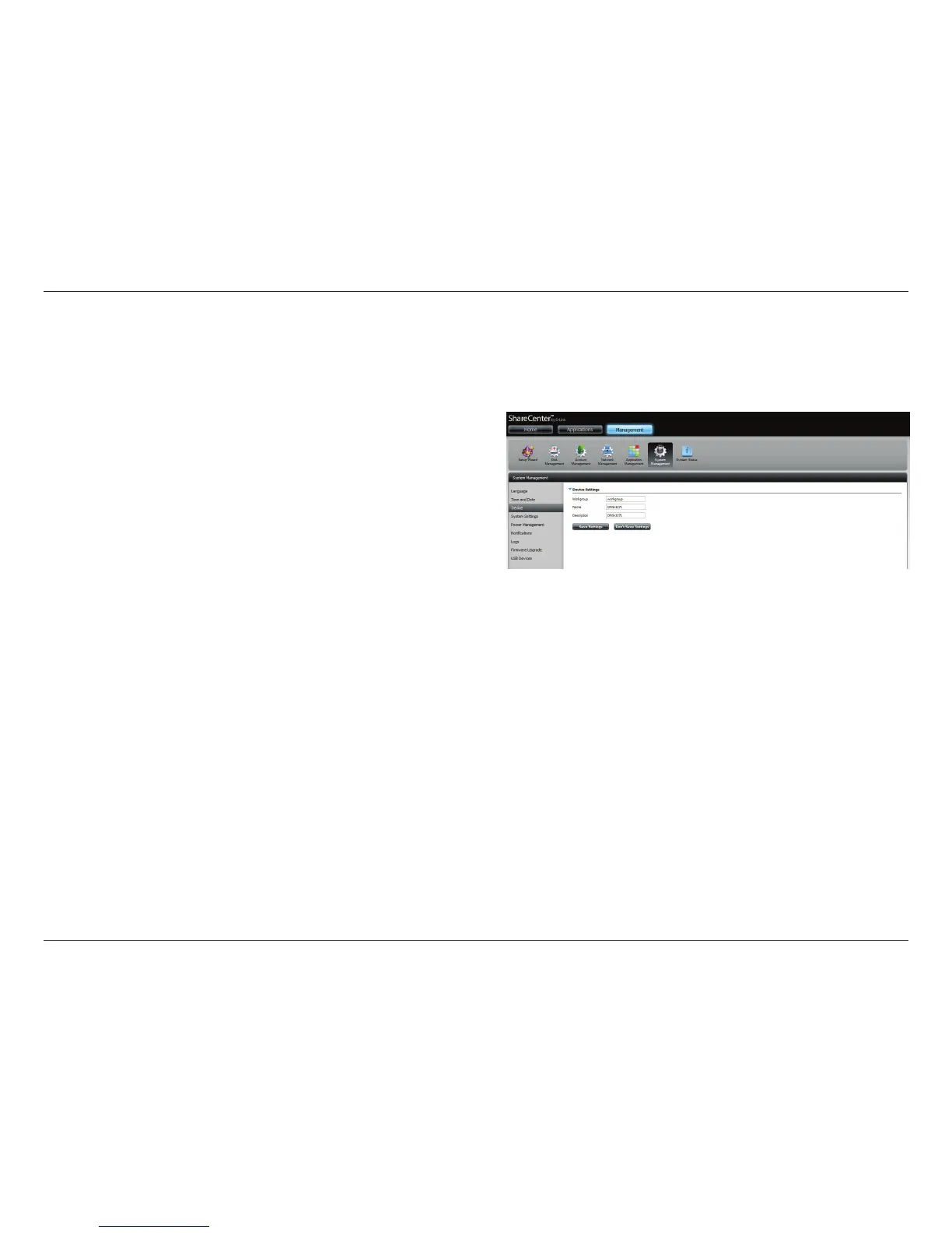 The device settings page allows you to assign a workgroup, name and description to the device. You can access this device by typing the host name
