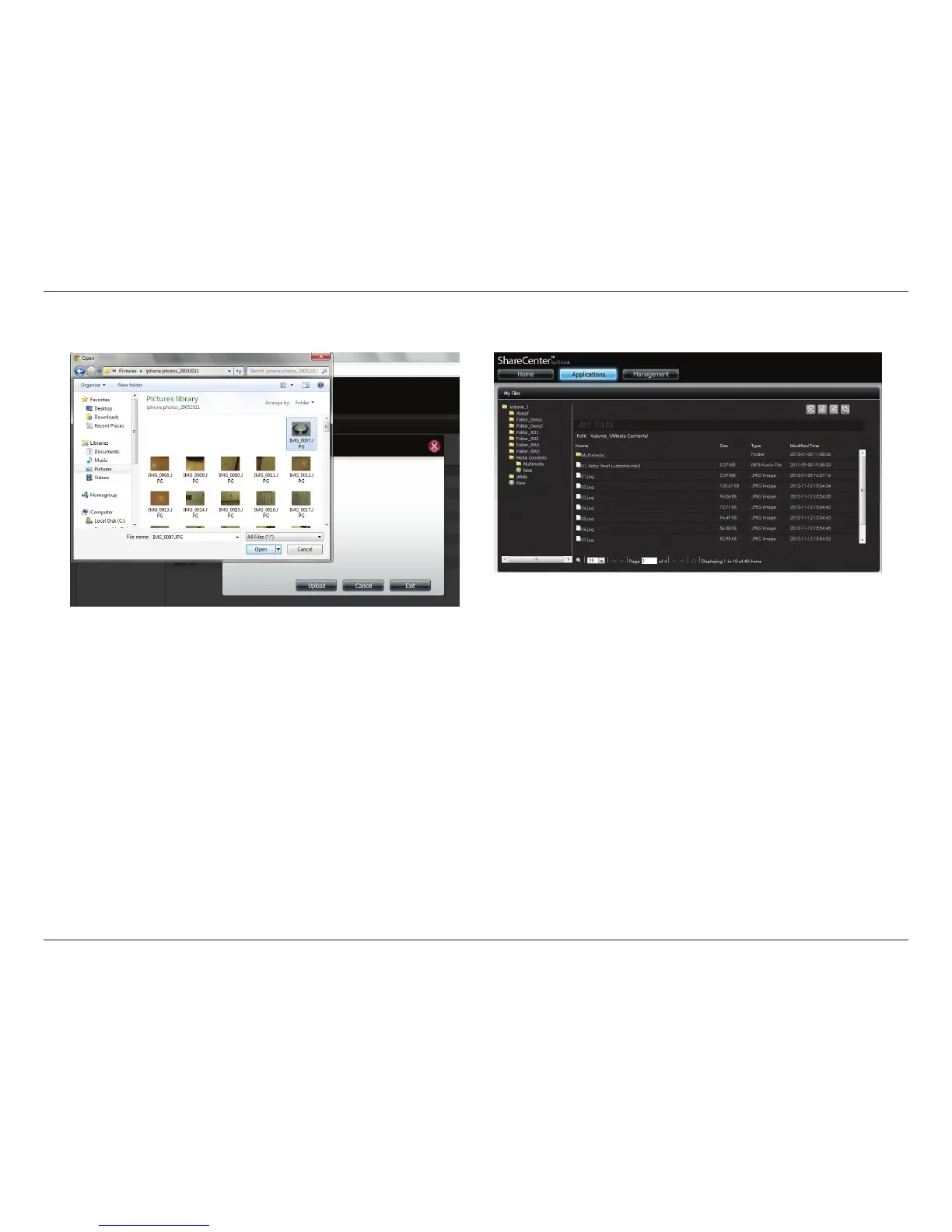 Click Upload to start the uploading process. Then click Exit to close the upload window. The le updates to the NAS and is displayed on the directory