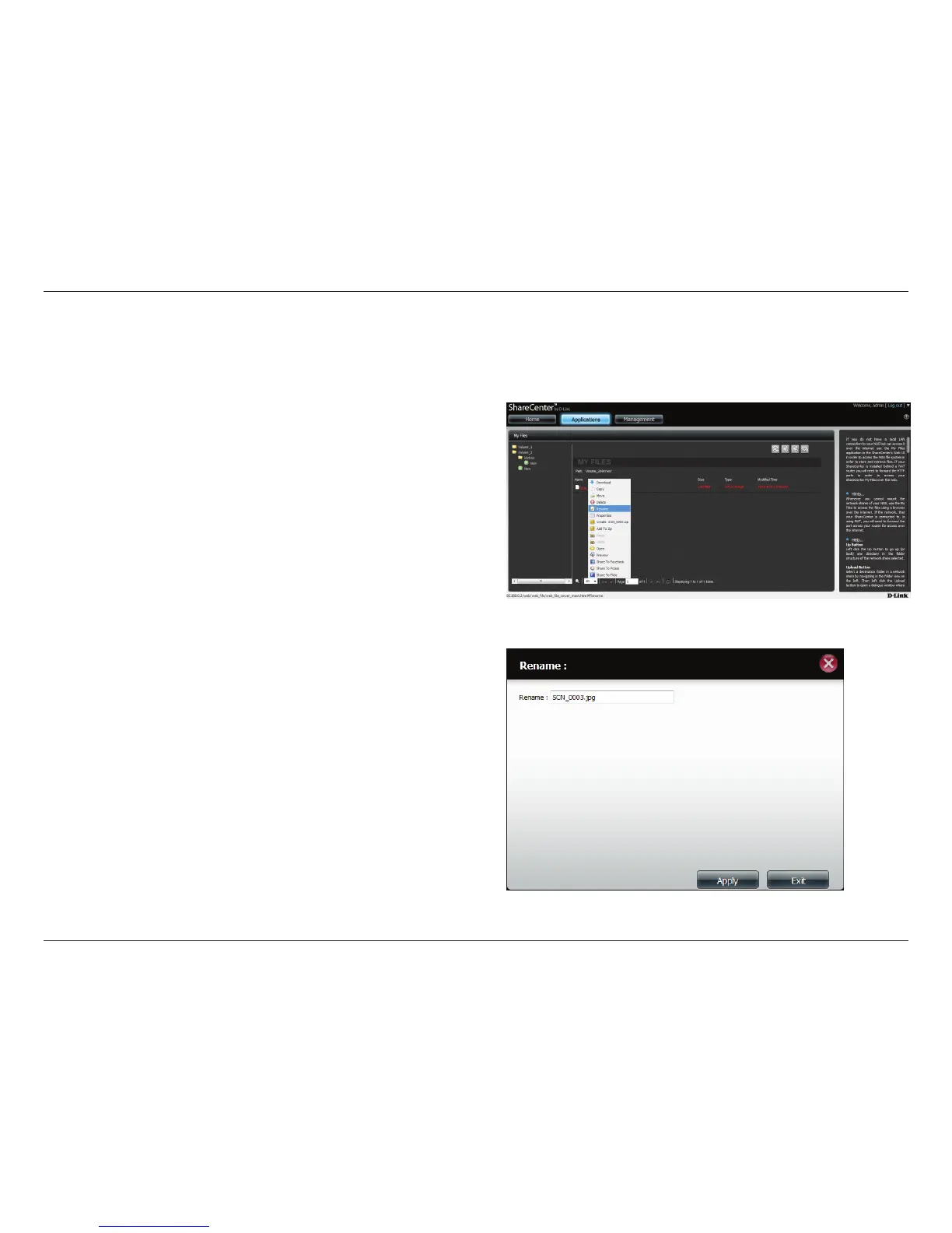 To Rename les from the NAS, select the le you want to rename (lighlighted in red) and right-click. From the drop-down list click Rename.