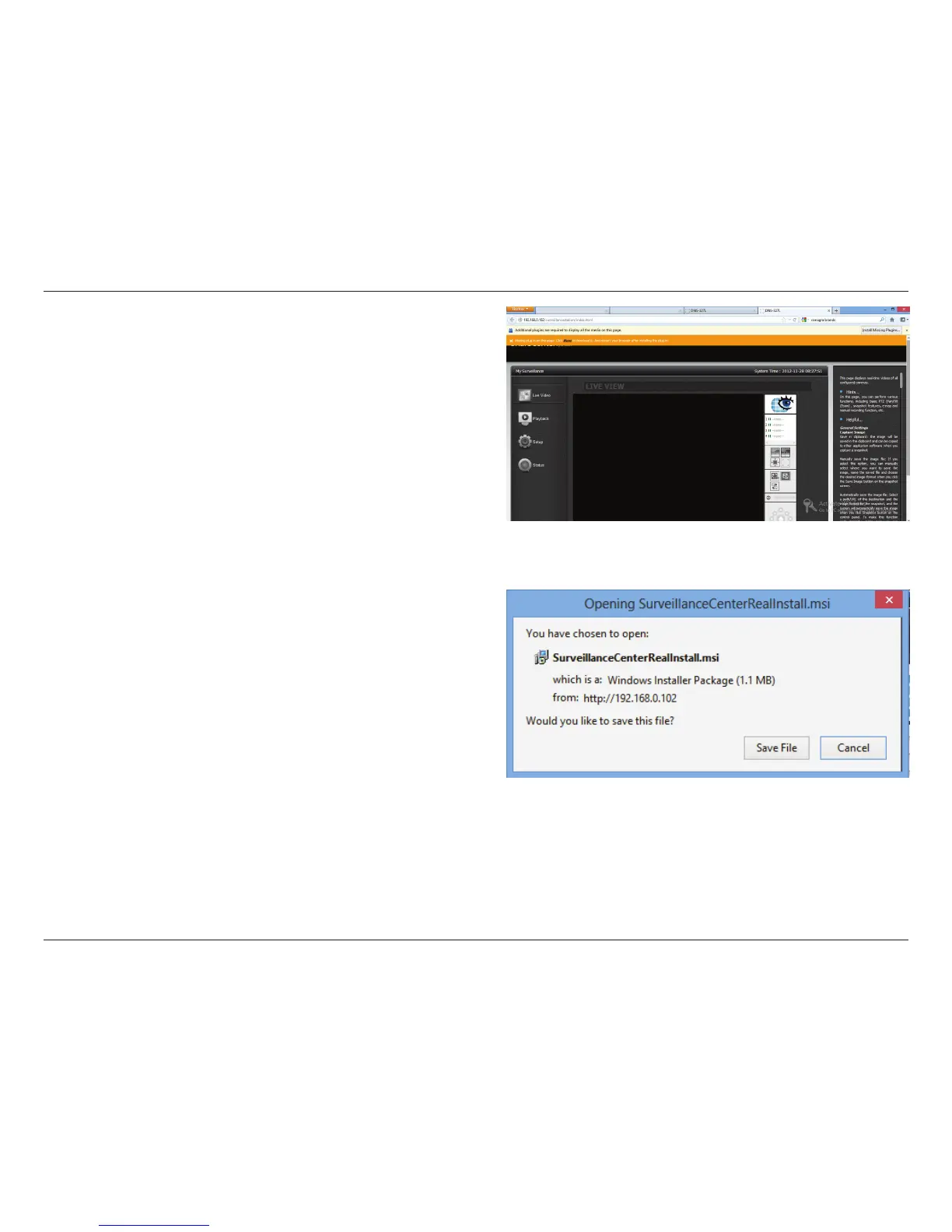 Click Save File to accept the SurveillanceCenterRealInstall.msi le.