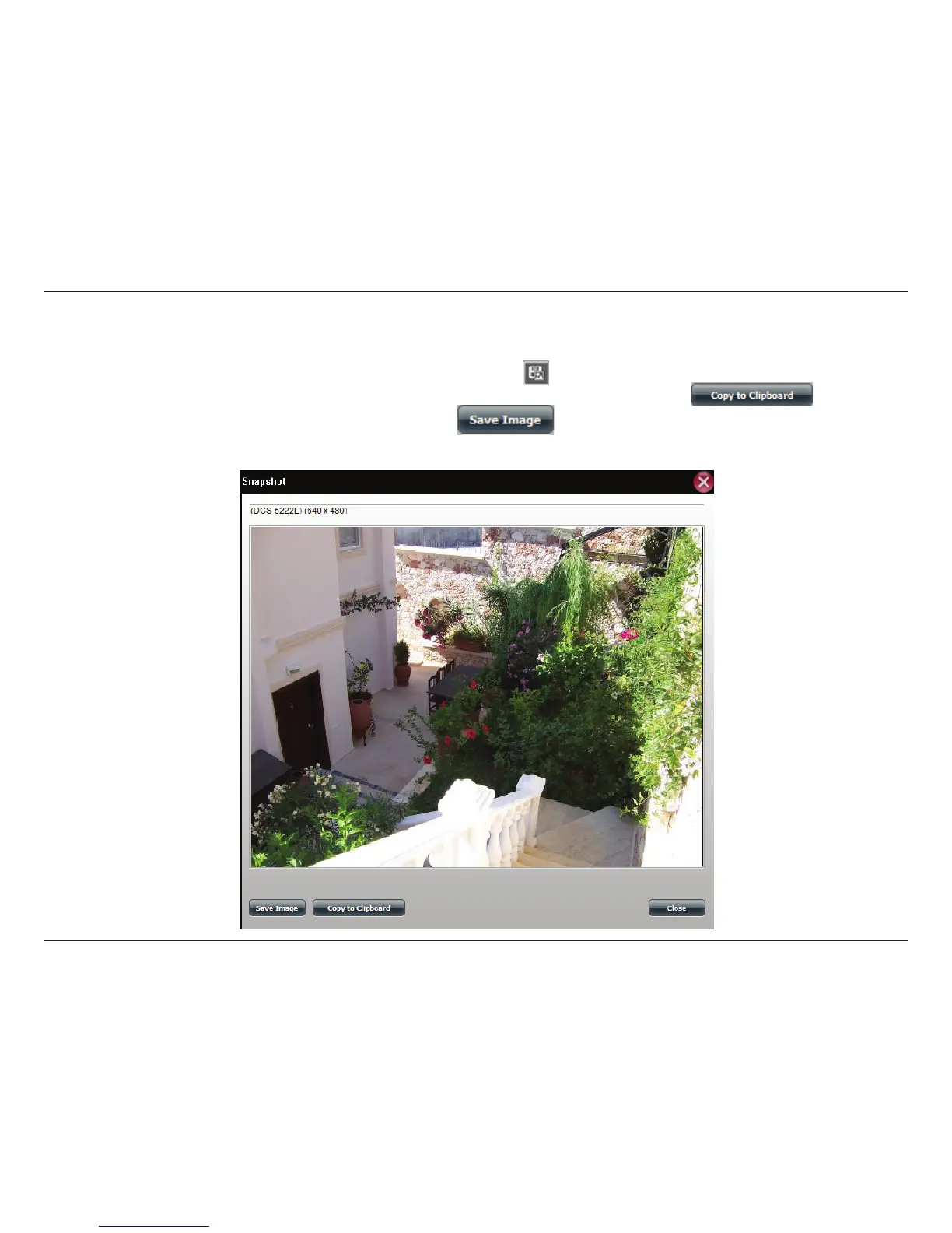 You can access Snapshot from the Live Video screen by clicking the button. This takes a snapshot of your current live