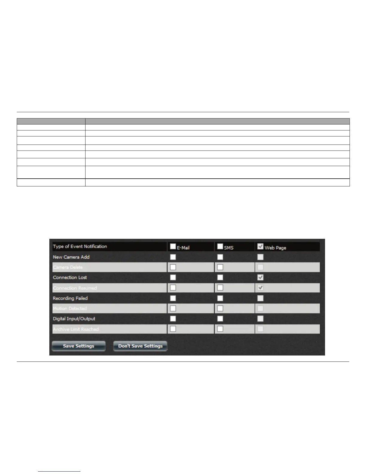 These settings are activated by using the Email, SMS, or Web Page