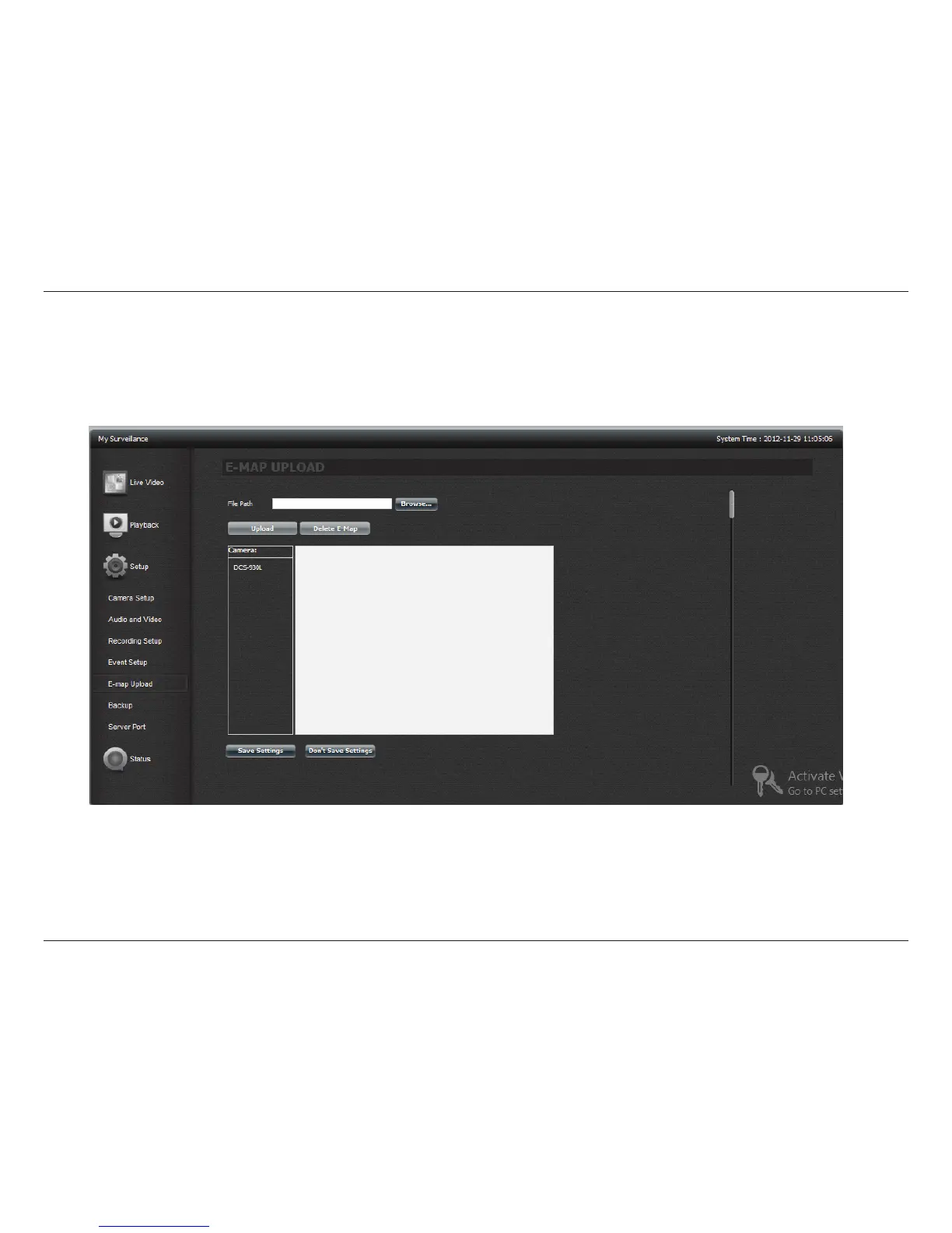 cameras. The E-map, in JPEG, BMP, GIF and PNG format is uploaded to the DNS-327L and congured to work with the camera installed.