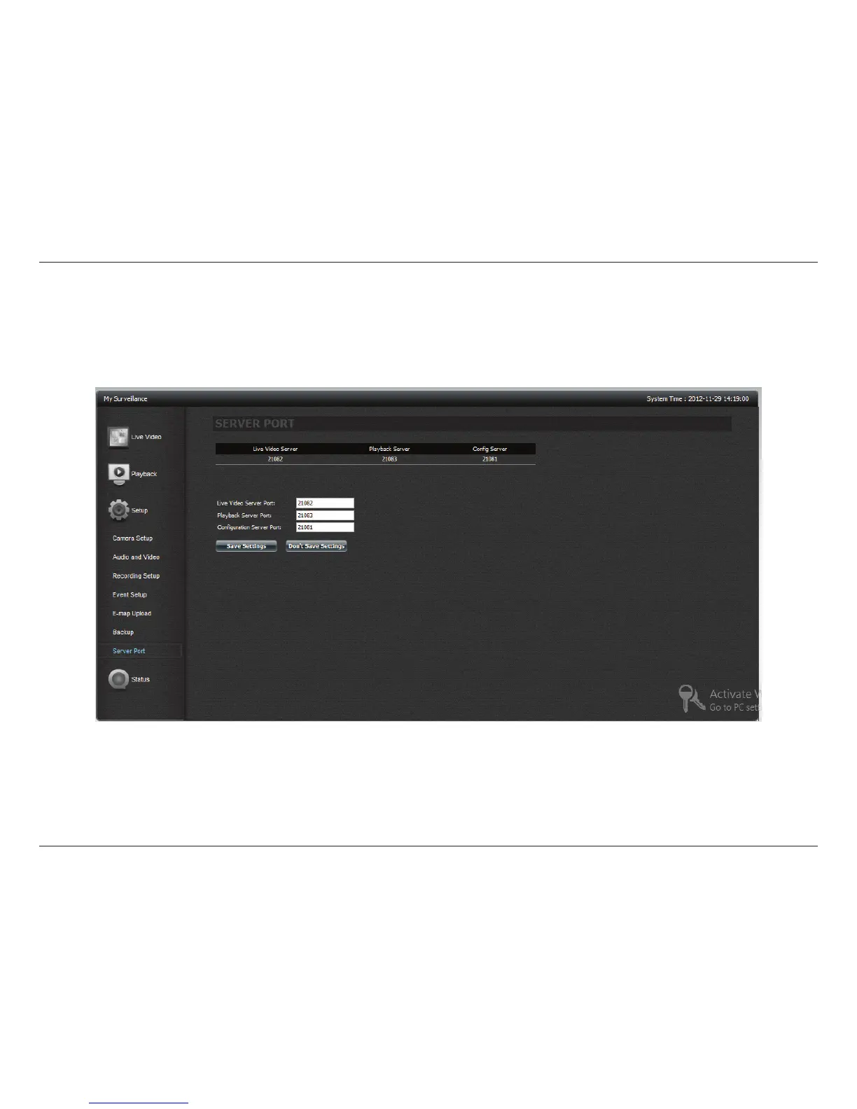 This page allows you to modify the ports that the Live Video Server, Playback Server and Cong Server operate on. You may wish to do this if you