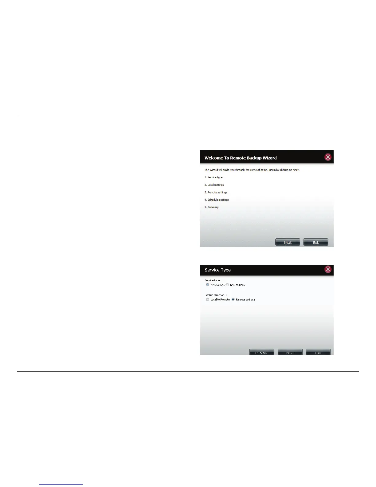 When you click the Create button above the Remote Backup list a wizard will start, guiding you to congure a new Remote Backup job.