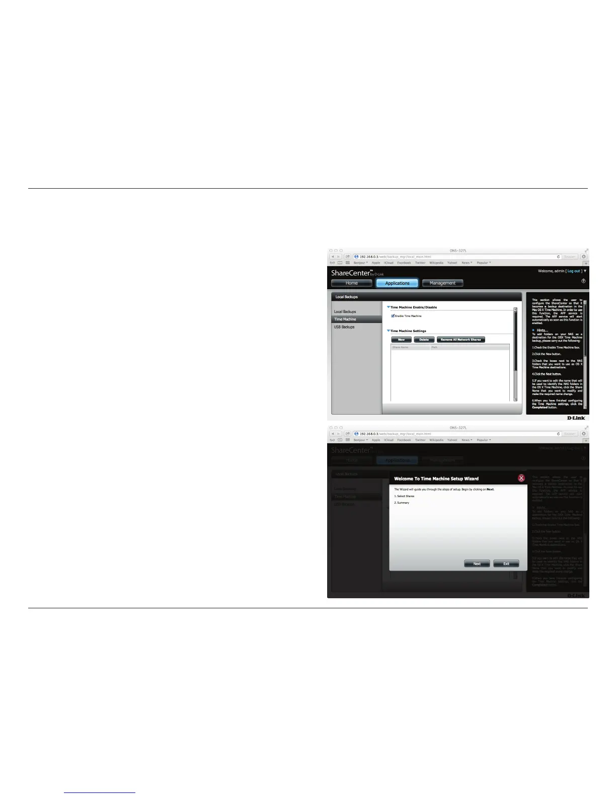 This section allows the user to congure the ShareCenter so that it becomes a backup destination in the Mac OS® X Time Machine. In order to use
