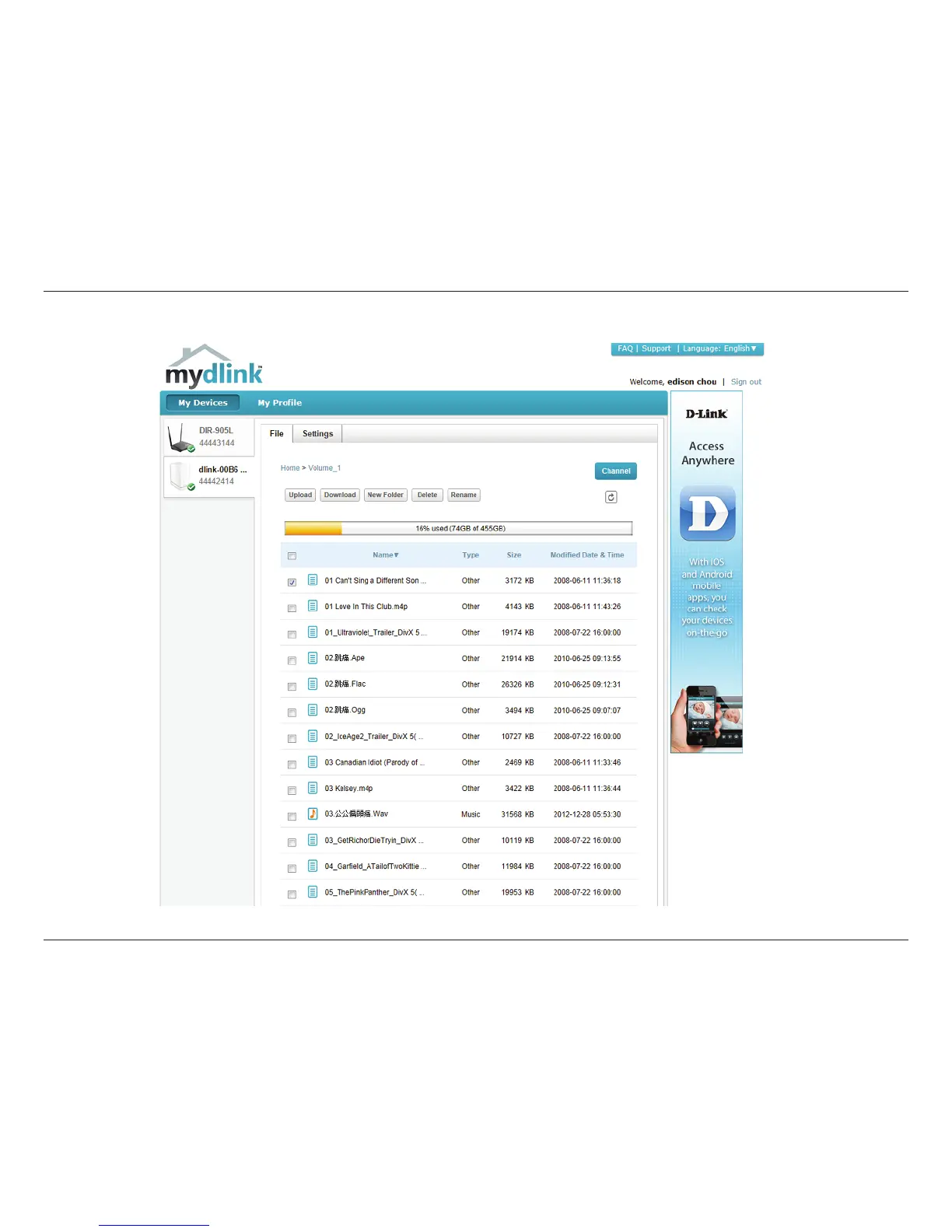 Click Volume 1 to see its contents. Here you can create a New Folder, Upload and Download les, Delete and Rename les.