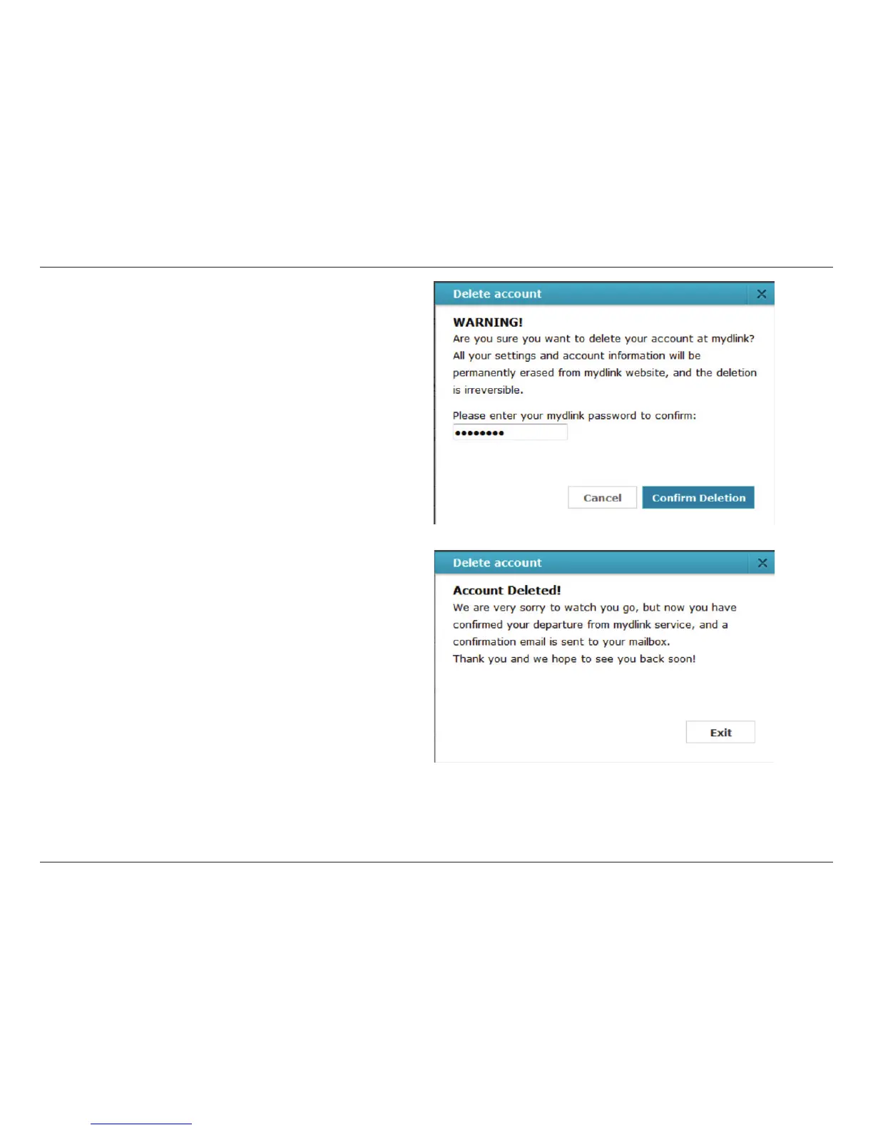 In order to delete the mydlink account you need to enter your