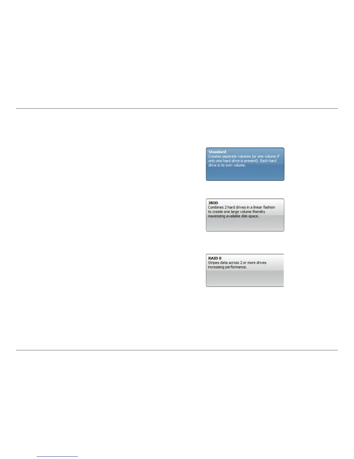 Standard RAID - creates a single volume for one drive or more drives.