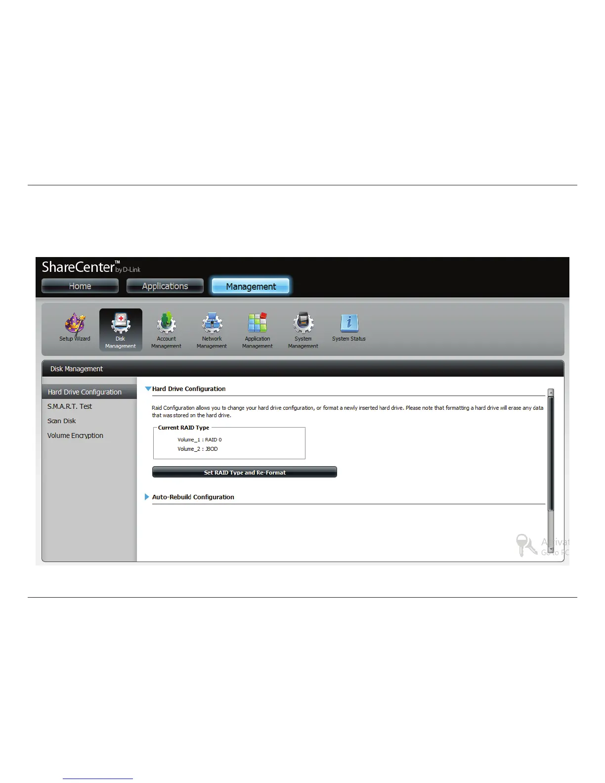 Step 34 - To verify your RAID 0, login to your NAS, go to Management. Disk Management, and Hard Drive Conguration.