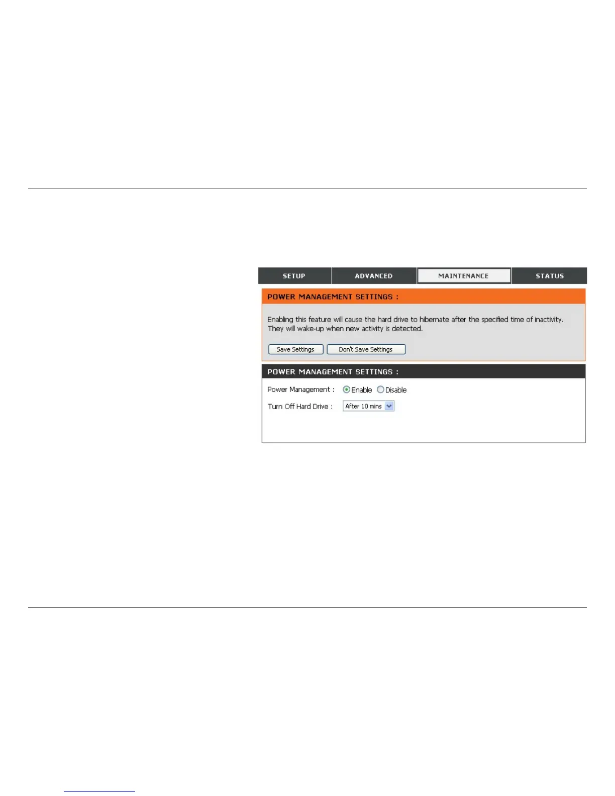The DNS-343 Power Management feature allows you to configure the drives to shut down after a specified idle time.