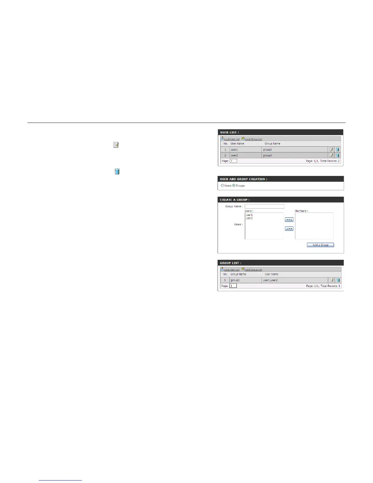 User and Group Creation: Click the Users or Groups radio button to enter user or group