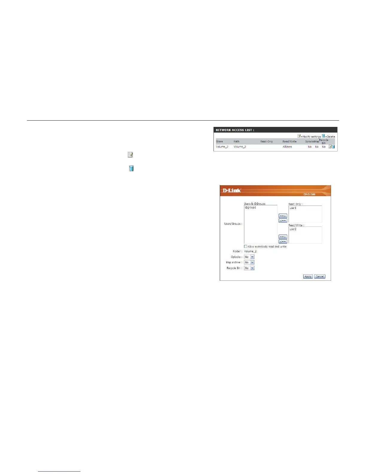 Access Lists that have been setup on the DNS-346