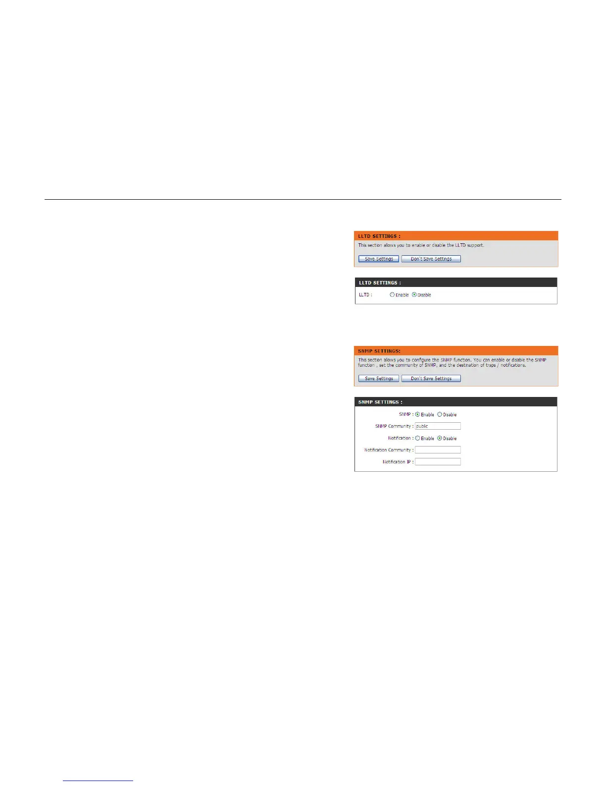 SNMP allows the DNS-346 to enable or disable the SNMP function, set the community of SNMP, and