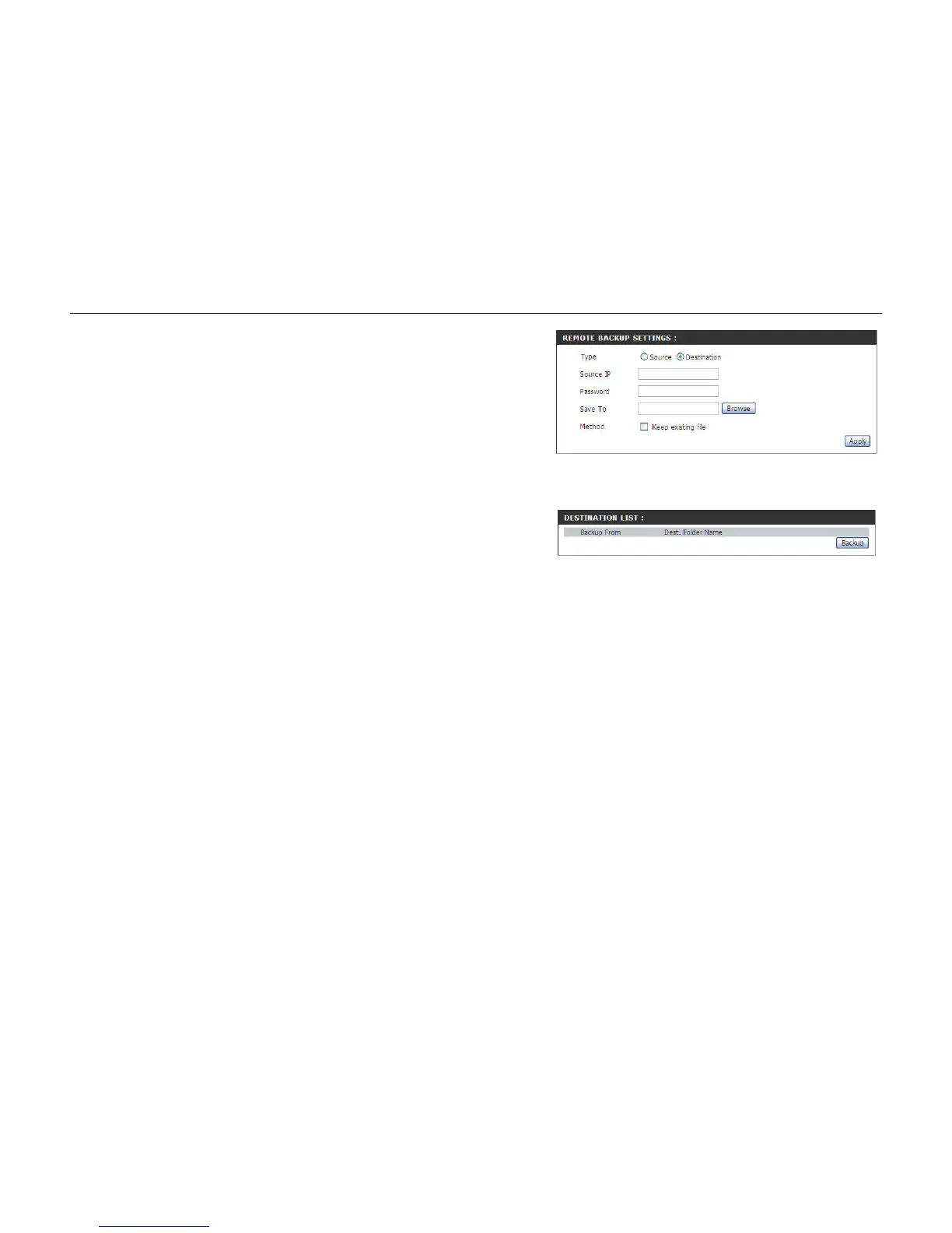 Indicate the destination device which will receive the backup data