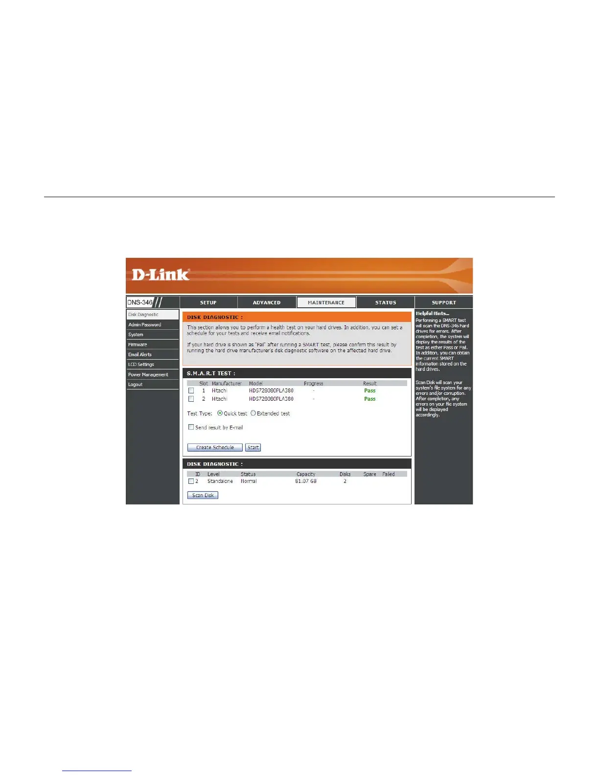 alerts, configure Power Management options, configure Dynamic DNS, change the LCD Display settings and get diagnostic information about the installed Hard Disks.