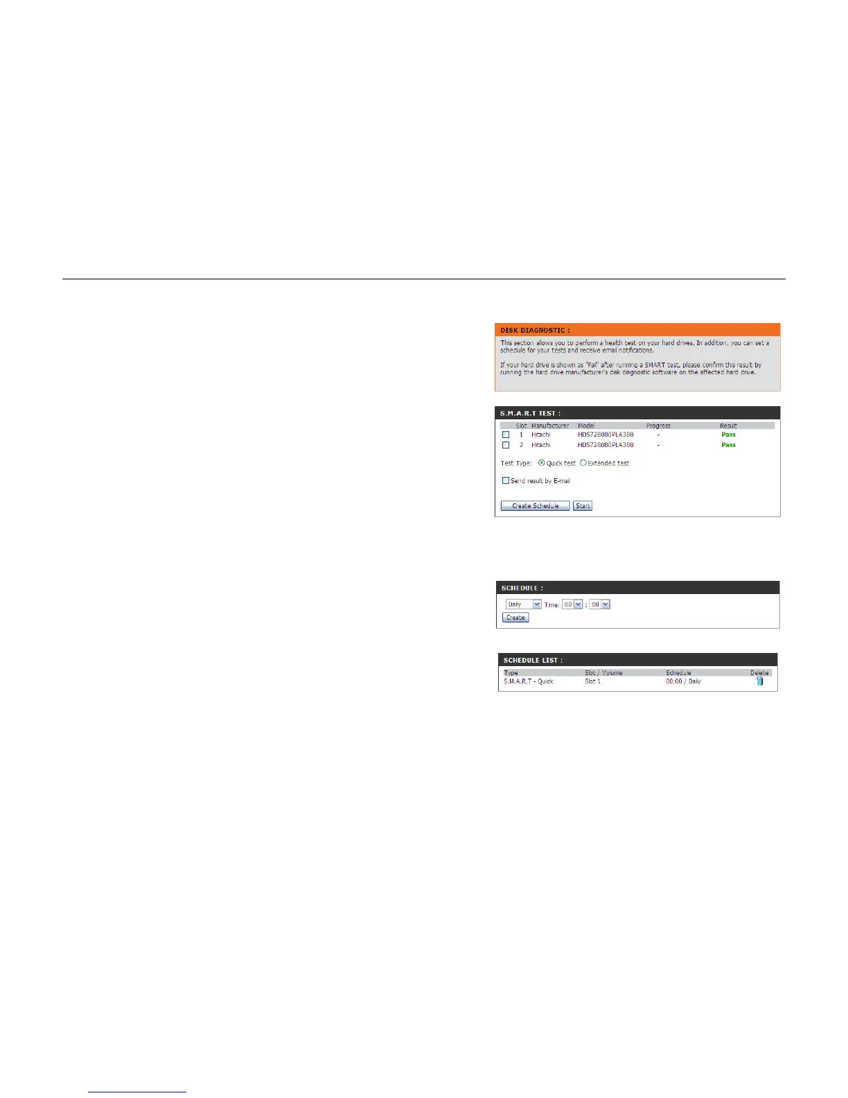 The section allows the administrator to perform a diagnostic test on the hard drive(s) and/or the file