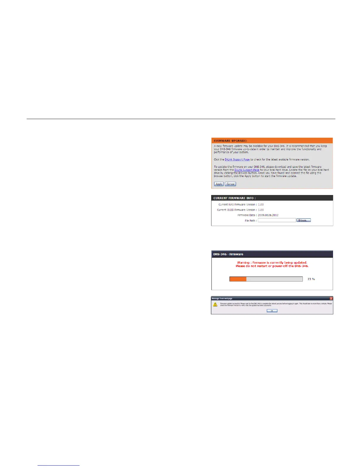 The DNS-346 Firmware Upgrade menu makes it simple to check for new firmware releases and