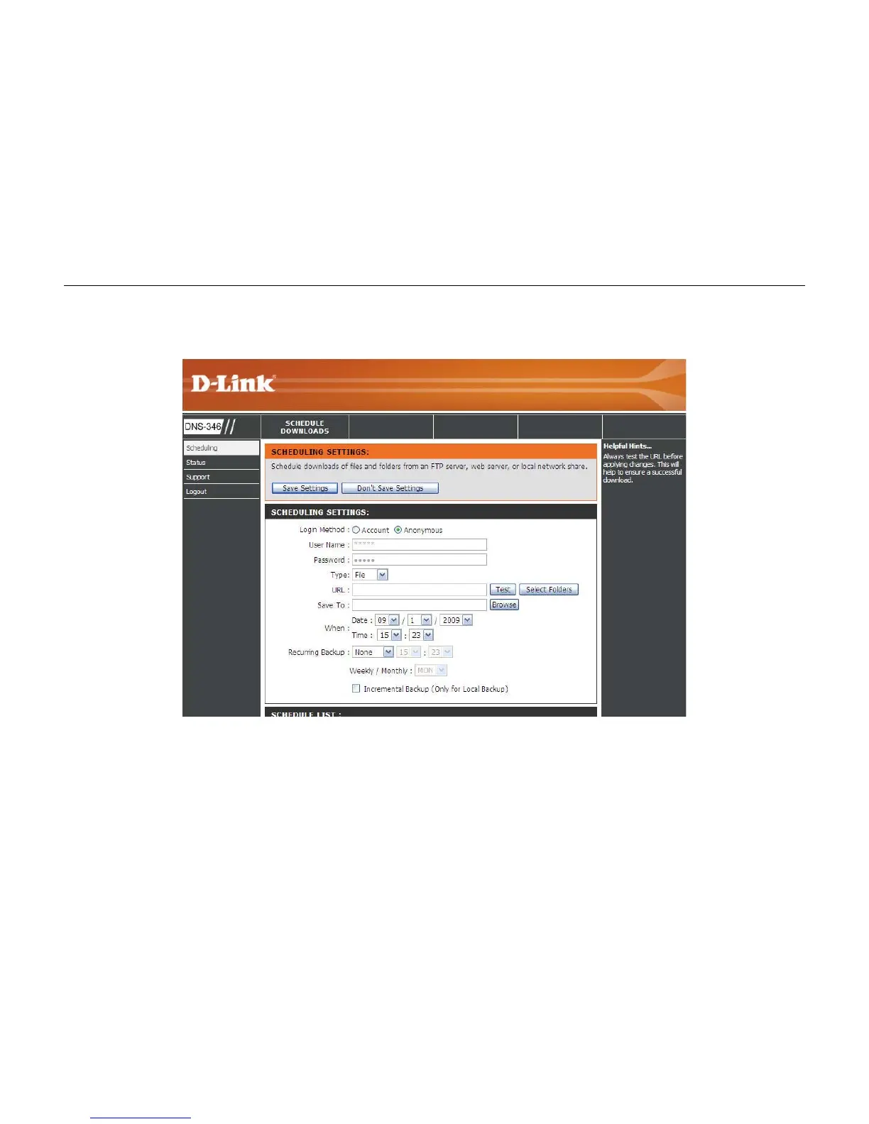 D-Link DNS-346 - Schedule Downloads Section