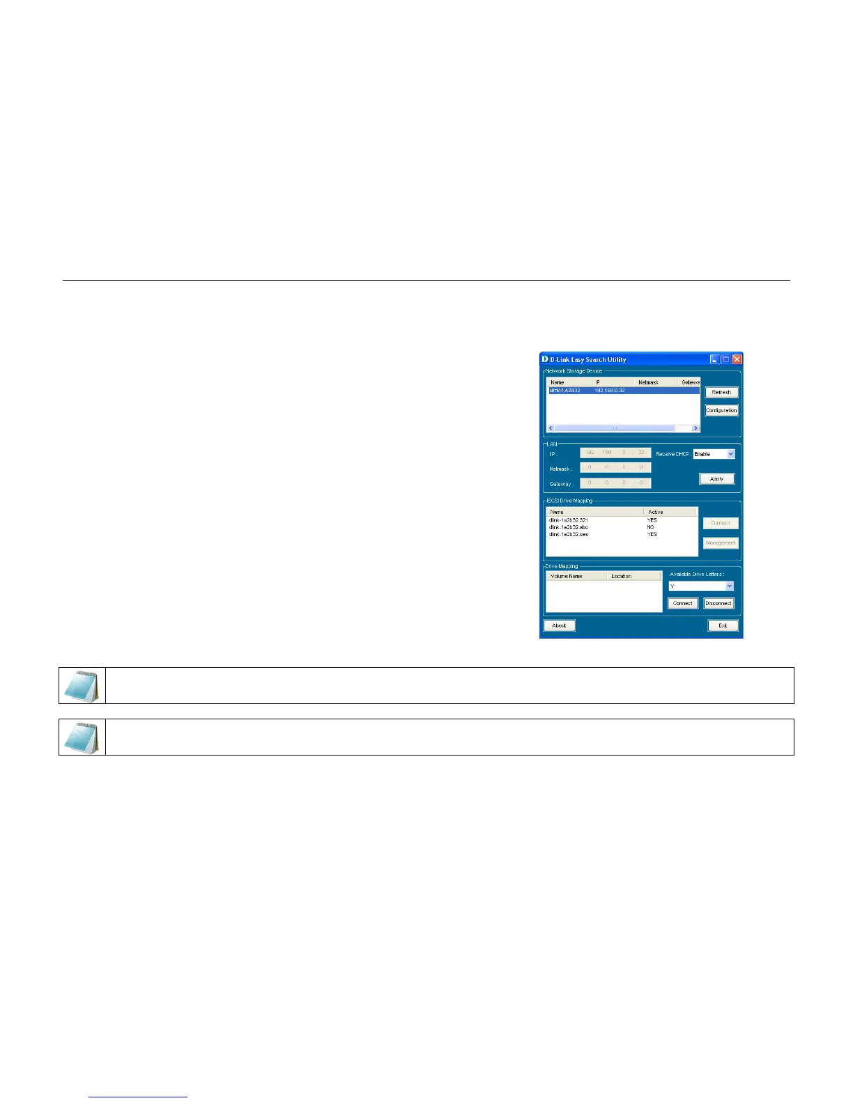 The iSCSI Drive Mapping is used to manage the iSCSI settings on the DNS-346. Carry out the following to configure the iSCSI settings: