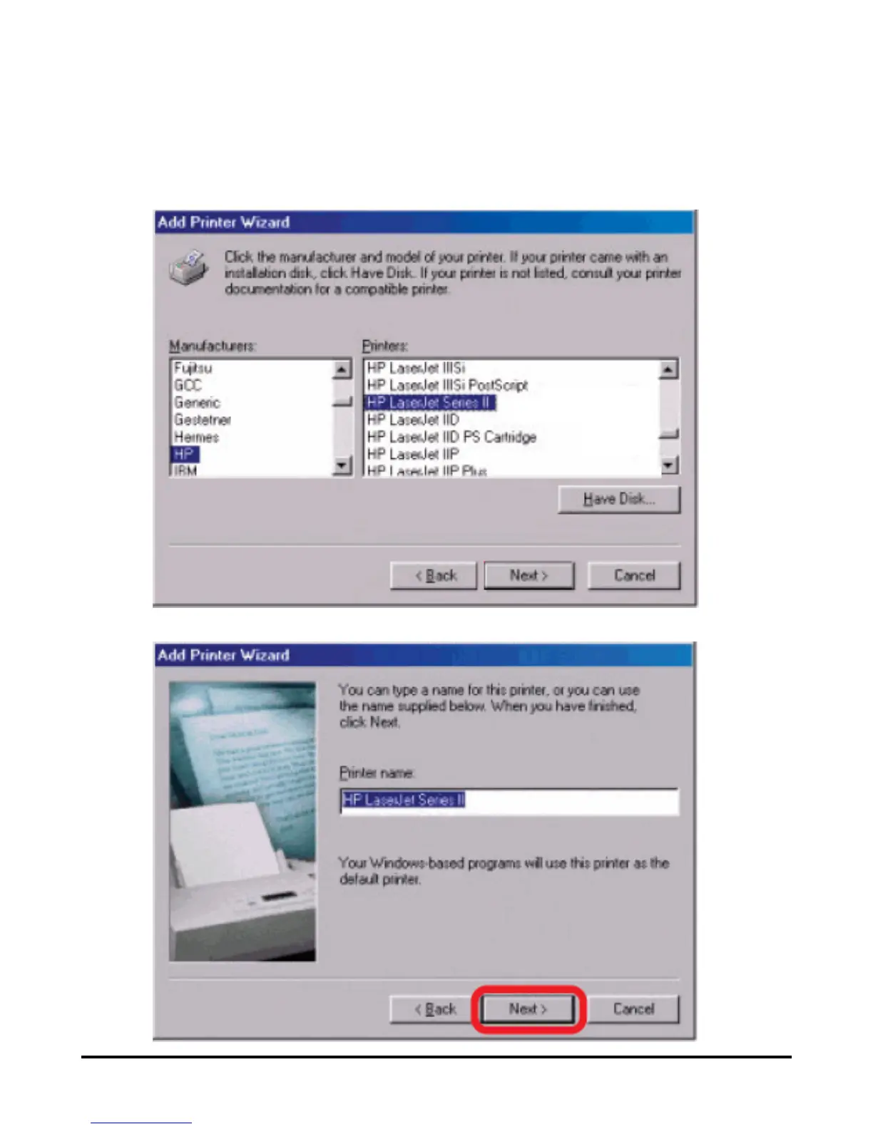 Highlight the printer, as shown. If the desired printer is not on the list, click Have