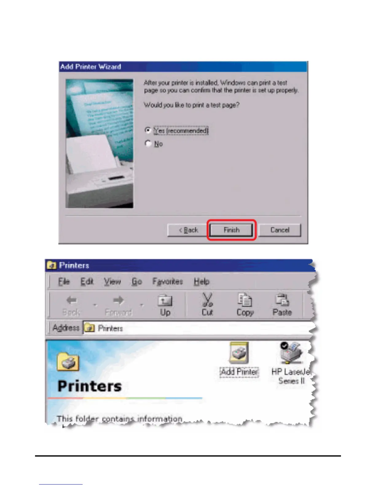 Select Yes to print a test page. Click Finish.