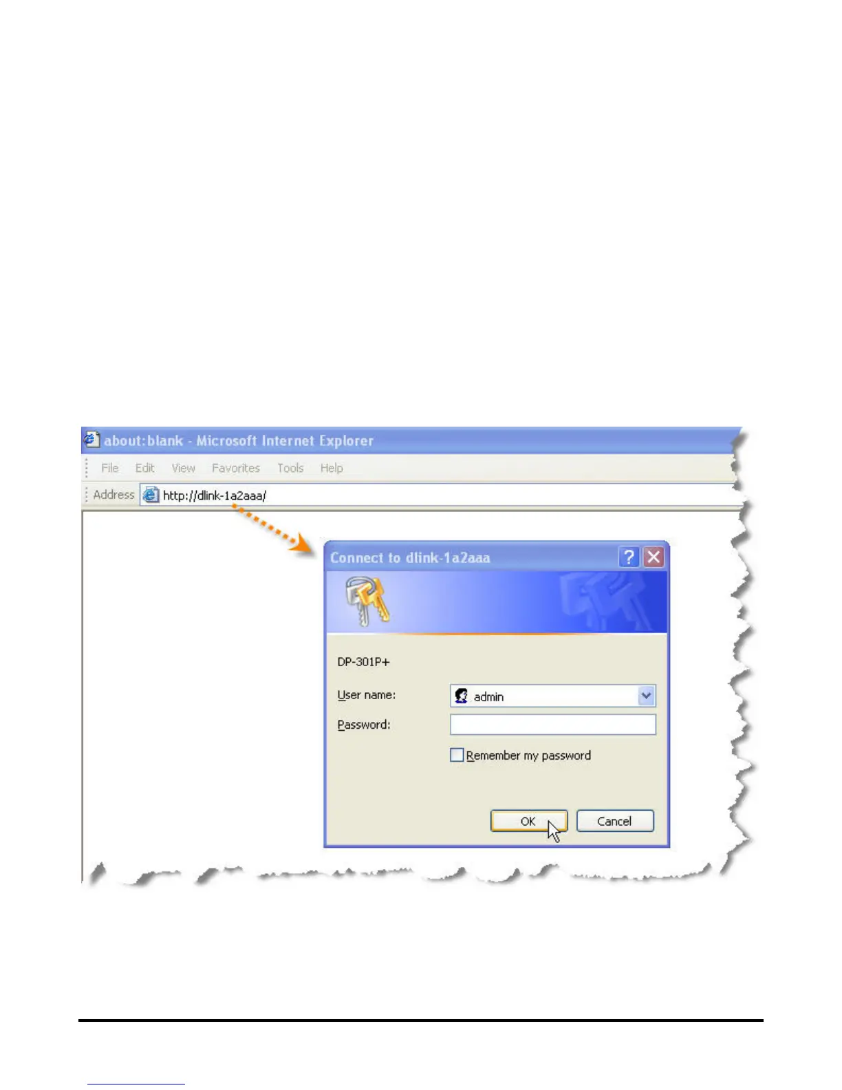 screen. Type “admin” in the User name box, leave the Password box as blank, and