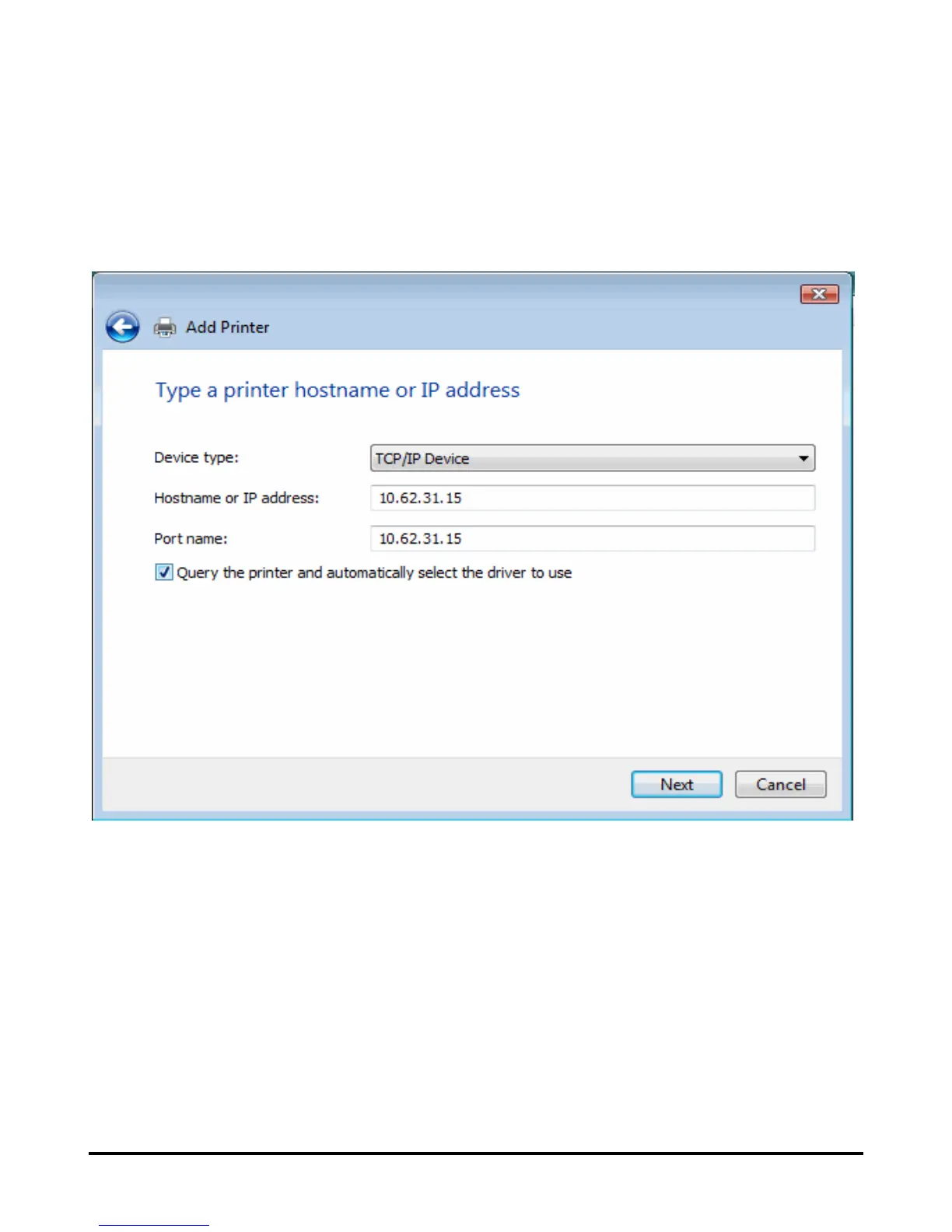 Type the IP address of the print server (e.g. 10.62.31.15 used in this manual),
