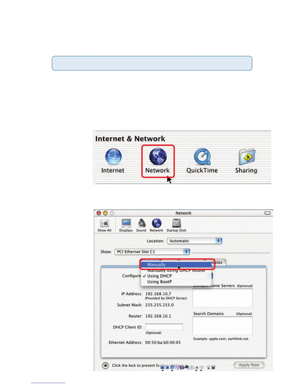 Quick Installation Guide, change the IP address of your Macintosh to access the