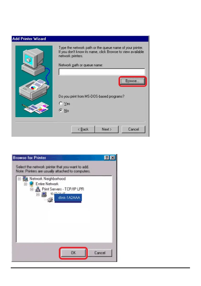 At the following screen, browse for the printer port and highlight the port (e.g.