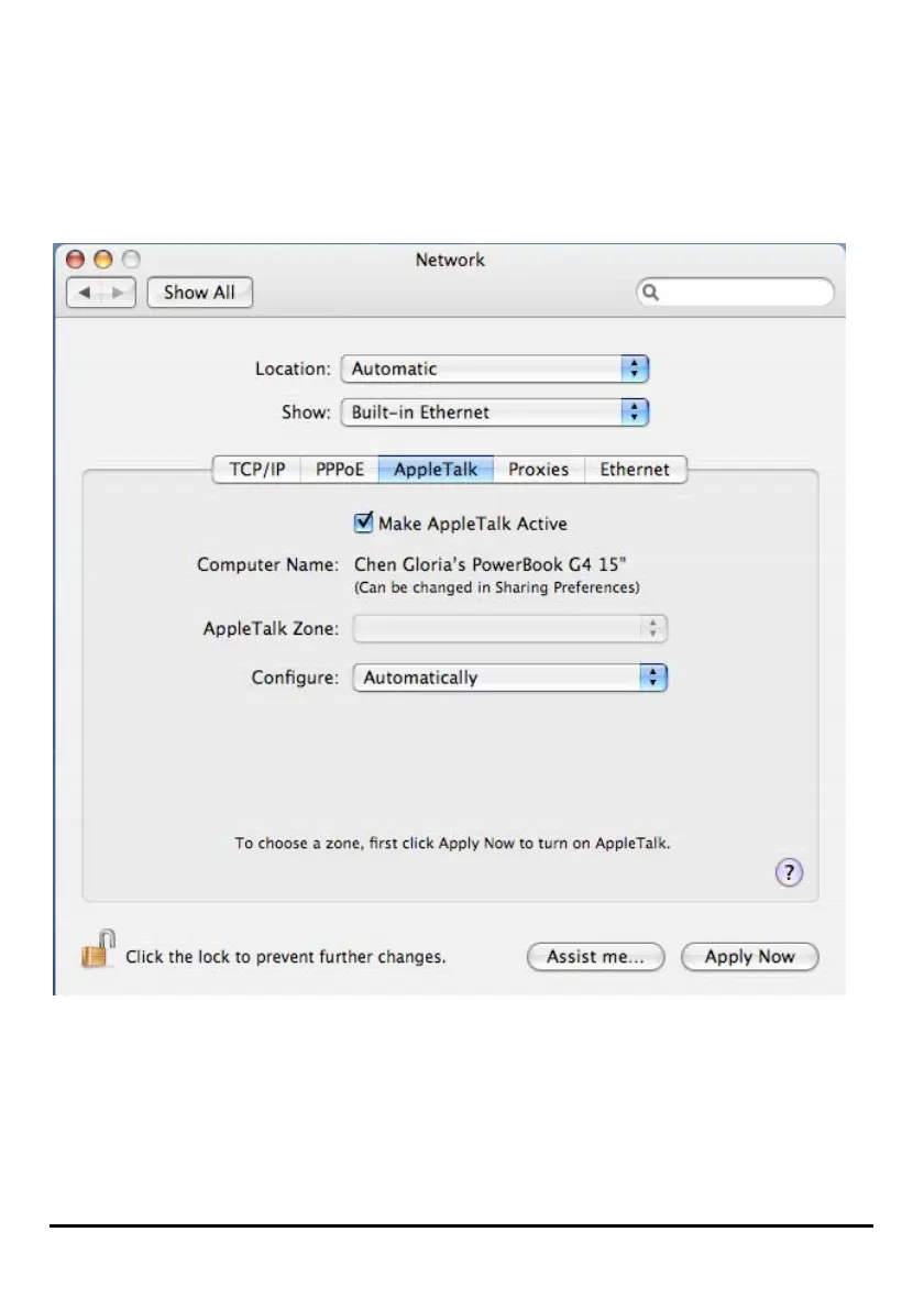 Select the Apple Talk tab in the Network menu. Check to select the Make Apple