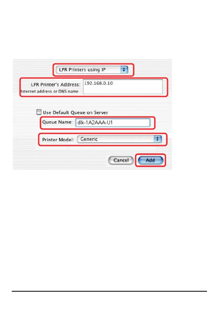 Type the IP Address of the Print Server into the LPR Printer‘s Address field.