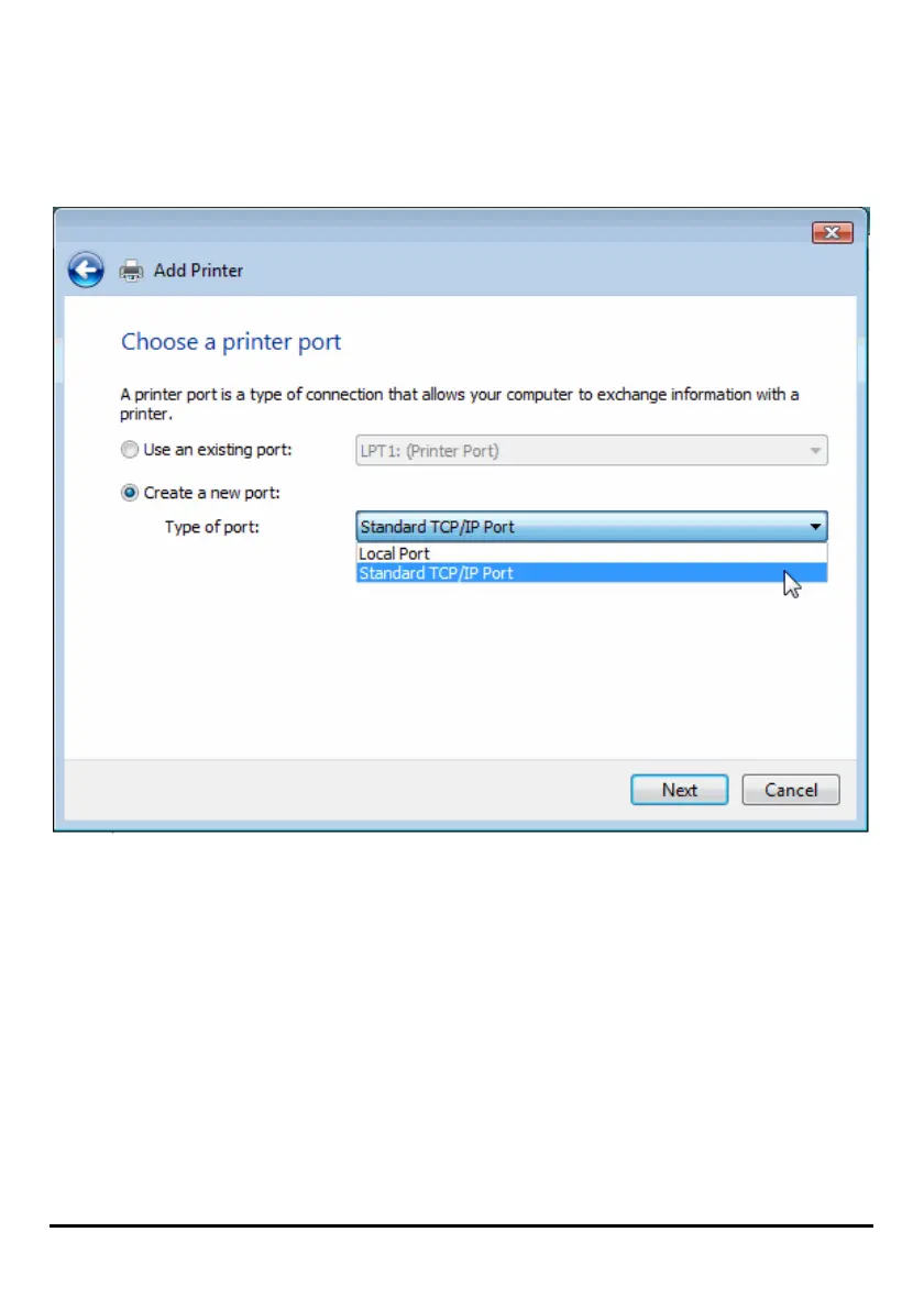 Select the second option, Create a new port, and highlight Standard TCP/IP
