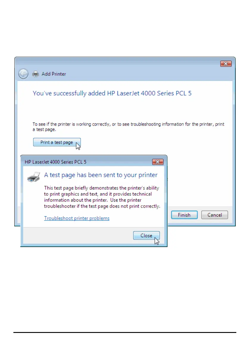 After clicked Print a test page, a small dialogue box will show up as below. Click