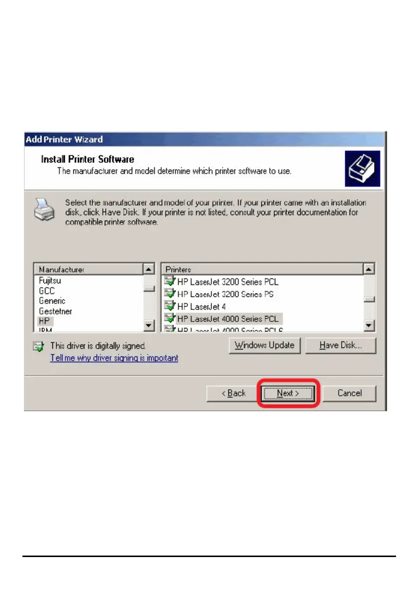 Highlight the printer, as shown. If the desired printer is not on the list, click Have